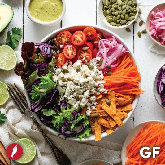 Tired of soggy salads and tossing unused produce in the compost? Us too, and we take freshness seriously! Our salads are perfectly portioned for one serving and stay fresh in you fridge all week long.